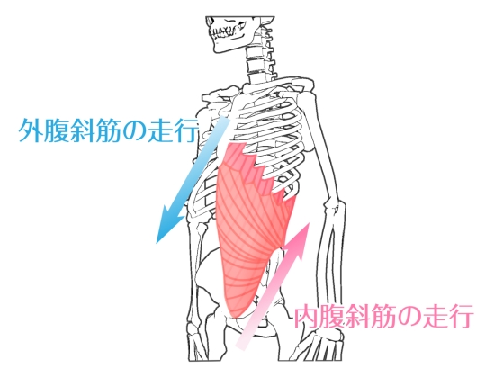 特に青い矢印の向きの外腹斜筋が固くなれば